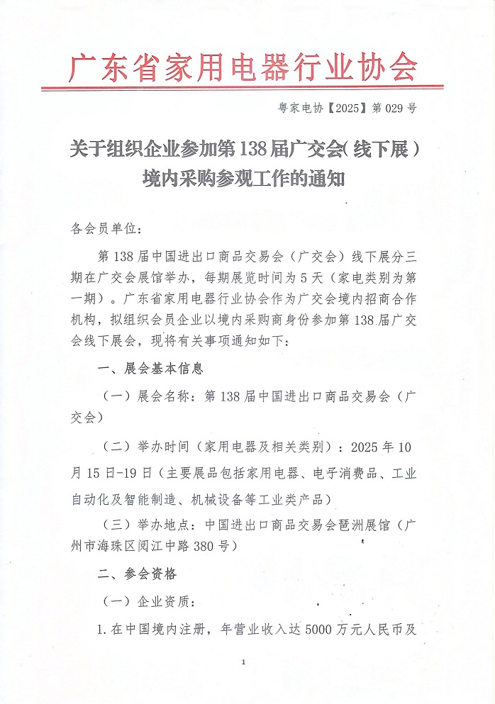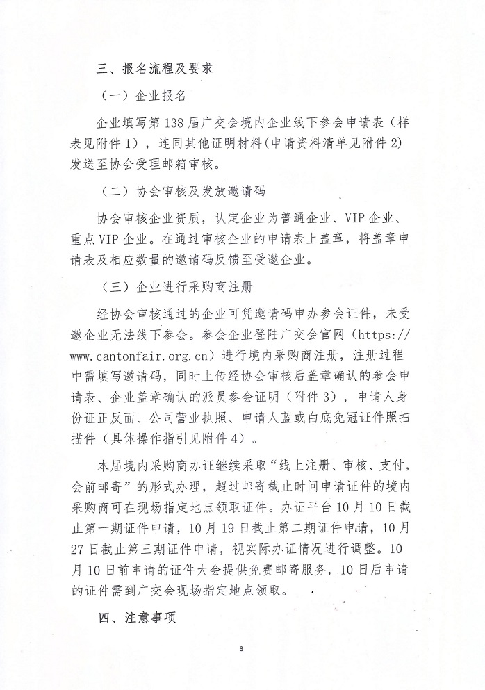 【重要通知】关于组织企业参加第138届广交会(线下展)境内采购参观工作的通知