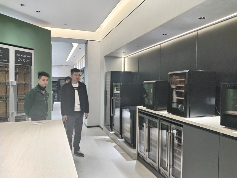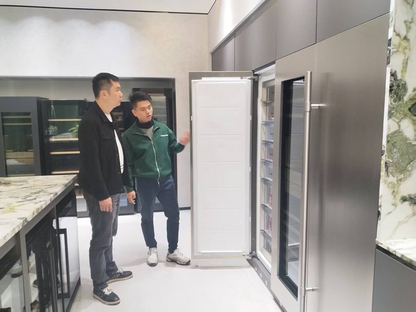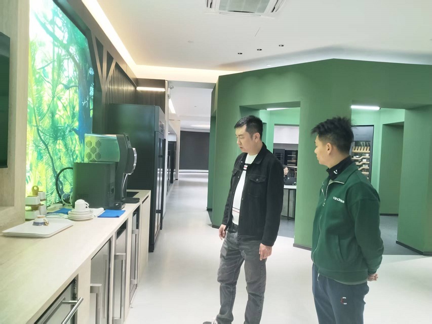 曹总向黄丹一行介绍了凯得智能运营现状以及最新研发成果等情况。作为国家级高新技术企业和广东省专精特新企业,凯得智能在高端制冷领域持续创新,其红酒柜产品在国际市场表现突出。产品涵盖全嵌冰箱、红酒柜、雪茄柜、制冰机、医疗柜等七大系列,远销全球80多个国家和地区,客户包括伊莱克斯、麦德龙等世界500强企业,连续多年保持红酒柜出口量领先地位。